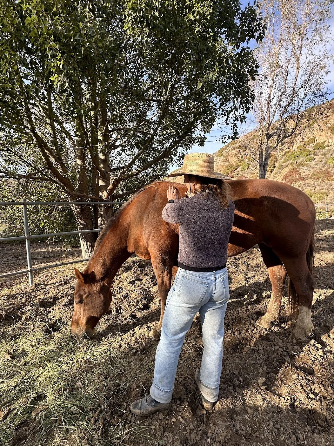 1.5 hour session in Malibu open to the public. This workshop will be focused on somatic regulation and grounding in the present moment. We will complete a journaling exercise, ground in the present moment with the horses and nature, complete a somatic focused group exercise, and a final reflection. Through hands on exercises with the horses we dive into what is going on inside - observing patterns and emotions. This will be more focused around somatics, grounding in nature and present moment awareness. Oftentimes the session offers an overarching insight for the group. Session is un-mounted.